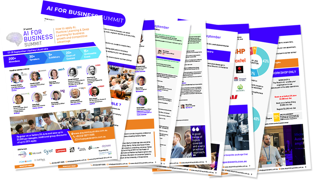 The AI for Business Summit is the “must attend” event for enterprise executives and decision makers from industry and business leaders from across the entire artificial intelligence and machine learning ecosystem in Australasia.